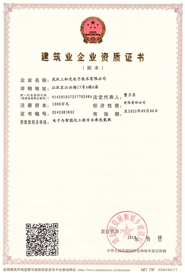 電子與智能化工程專業(yè)承包貳級(jí)證書